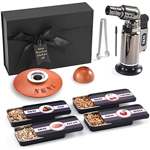 NKNI Cocktail Smoker Kit with Torch, Four Kinds of Wood Smoked Chips for Whisky, Cocktail and Bourbon, Old Fashioned Smoker Kit,Gift for Father, Husband and Friend (No Butane) (4)