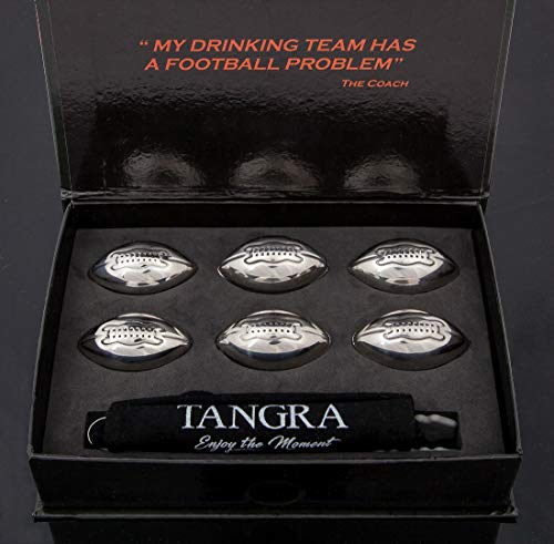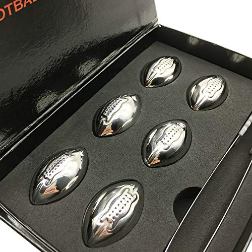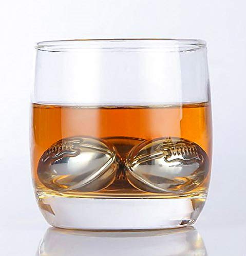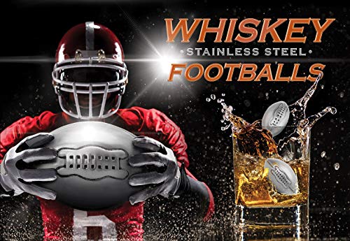 ❤️ BEAUTIFUL AND CLASSY LOOK: These stainless steel whiskey footballs are meant to be used to chill and cool your drink adding a little rebellion spirit and special atmosphere to your occasion. This is a great novelty item and a perfect conversation starter for any place. The set includes 6 stainless steel football-shaped whiskey rocks, tongs, luxury paper box and branded velvet pouch. 🍴 SAFETY AND HONESTY FIRST: The whiskey footballs ice cubes are made from 304 Food grade stainless steel sealed by welding and FDA approved. One football contains approximately 95% purified water, 5% alcohol. We must say that they aren’t better or as good as ice so please, put more footballs for the same results. WARNING!: DO NOT SWALLOW! DO NOT BOIL OR MICROWAVE!